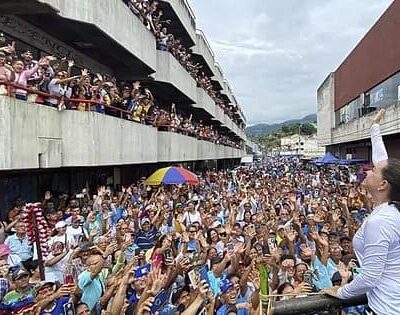 LeerLa opositora venezolana María Corina Machado saca músculo de cara a las primarias de octubre y se da un baño de masas en Valera El fenómeno María
