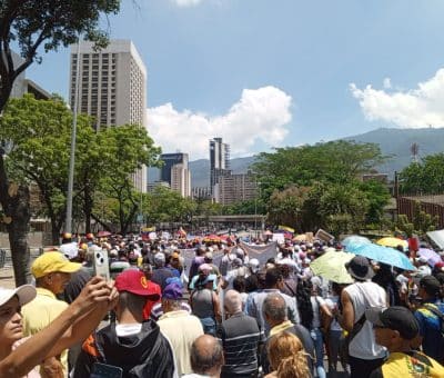 LeerUn grupo de trabajadores arrancó una movilización desde Plaza Venezuela con destino al palacio de Miraflores. Los manifestantes exigen conversa