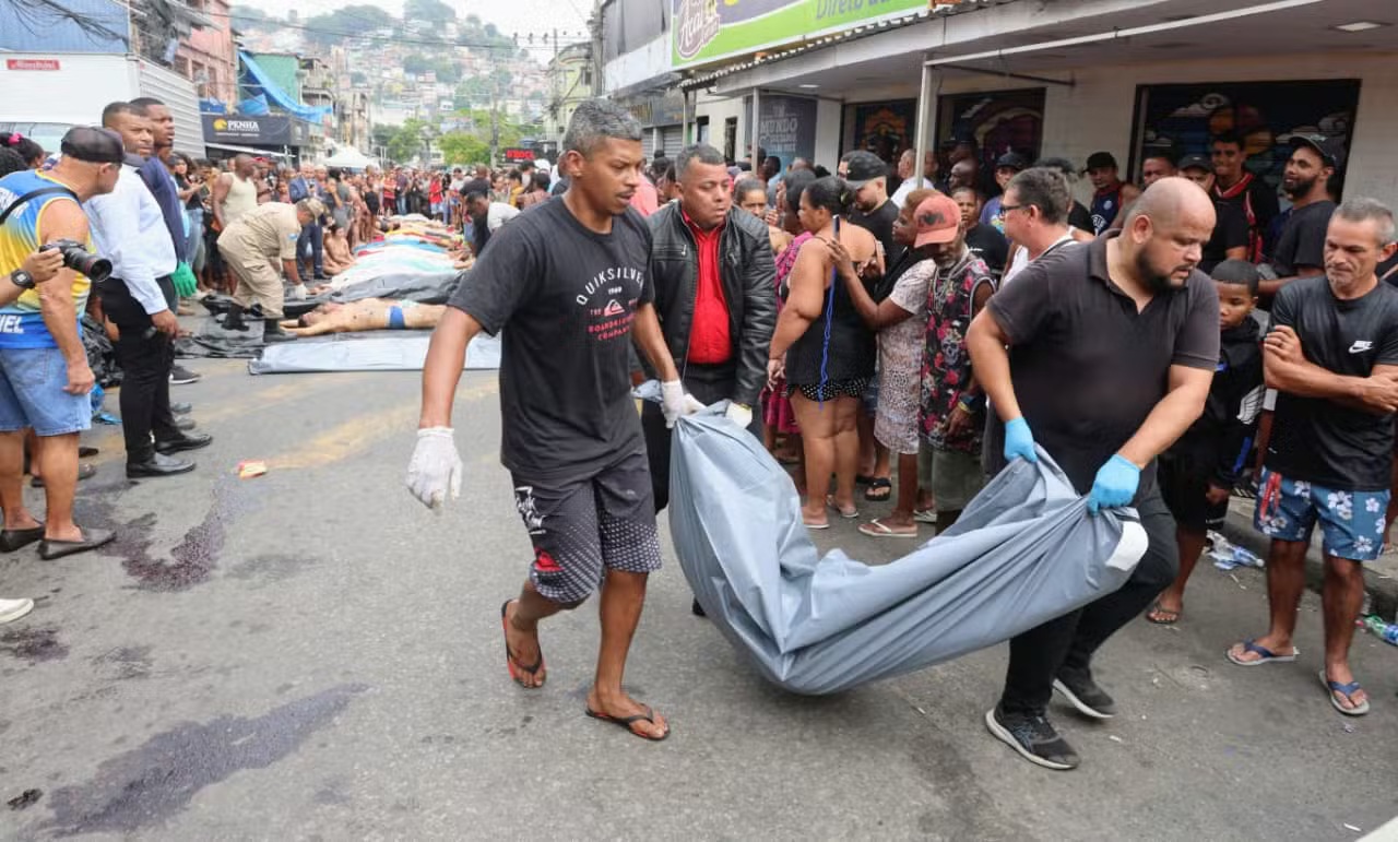 Tras una operación masiva en los complejos de favelas de Alemão y Penha —que dejó más de 120 muertos el martes—, los residentes se movilizaron para retirar los cuerpos de las víctimas del operativo policial de la zona boscosa conocida como Vacaria, colindante con ambos complejos. Desde las 21:00 horas, un grupo de voluntarios y familiares de los fallecidos se dedica a colocar los cuerpos en la llamada Praça do Inter, en Vila Cruzeiro.