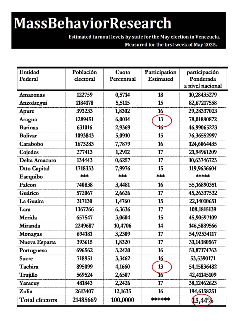 El estudio de la empresa americana MassBehaviorResearch, la cual es primera vez que la leo y es completamente desconocida para mí, no muestra nada distinto a lo que dice María Corina Machado y su combo.