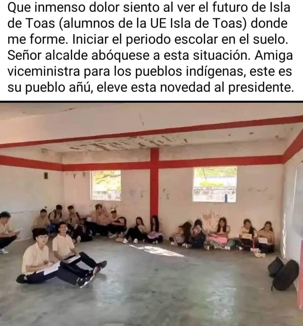 Me escriben de Isla de Toas, municipio Almirante Padilla: “Hermano te escribo desde el municipio almirante padilla no pegamos una con los gobernantes este alcalde es peor que el otro le dicen Dios,uno sabe que existe pero no lo vemos te voy a pasar unas fotos de como comenzaron los estudiantes del liceo de la isla en el piso y de último la respuesta de ellos esto es inaudito…”.