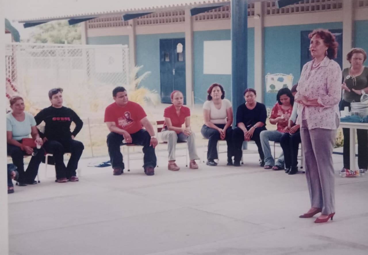 La enseñanza básica del teatro en escuelas públicas, ocupó en oportunidades a Jazmina Jiménez a dictar talleres a los docentes. En la foto cuando asistía a la Escuela Bolivariana Sisoes Finol, ubicada en Los Cortijos del municipio San Francisco, año 2004. (Foto: Cortesía)