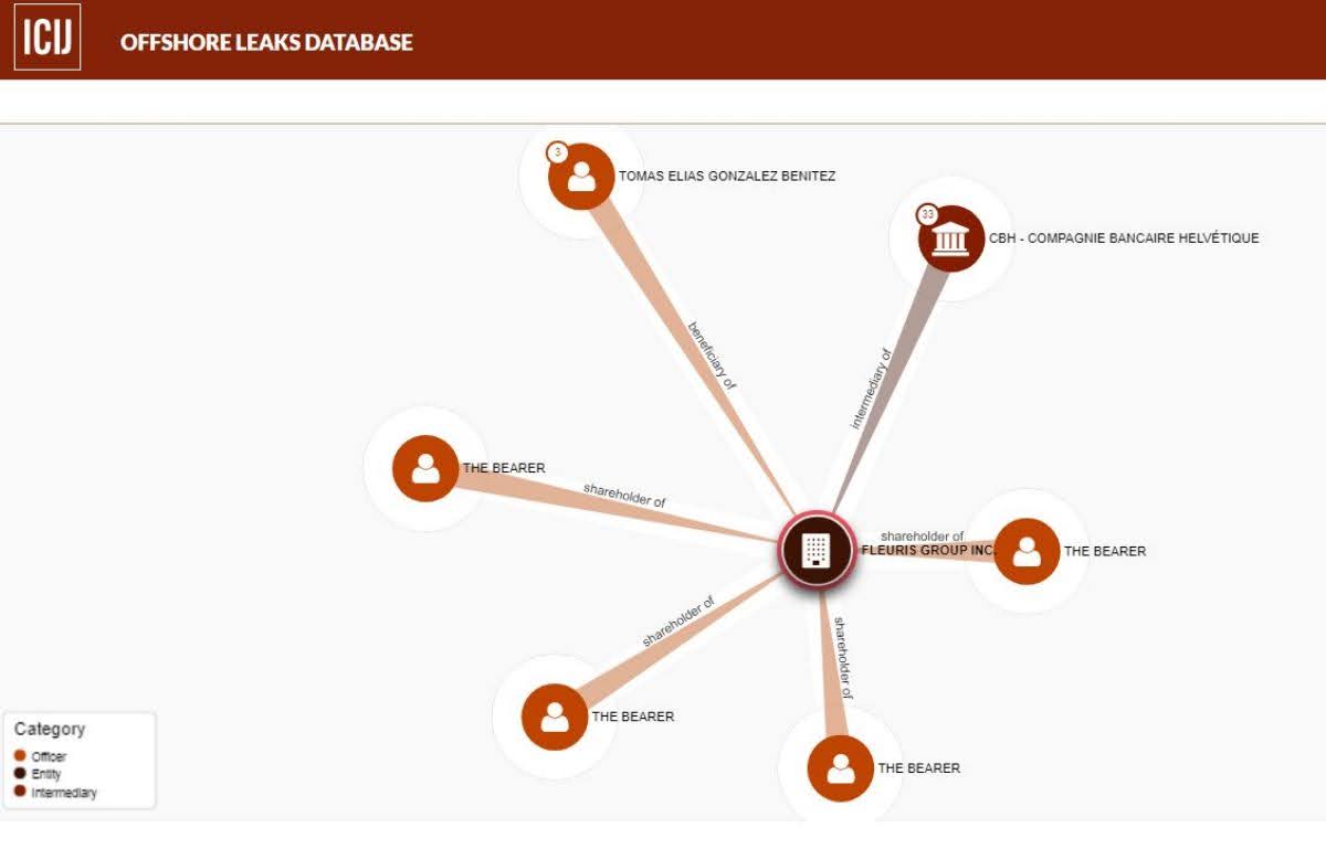 Como beneficiario de Vilex Trading Inc. y Bolcos Universal Corp., ambas registradas en Suiza, aparece Tomas Elías González Benítez, quien está vinculado también a Fleuris Group Inc., todas compañías fachada, vinculadas a una dirección en República Dominicana. específicamente en el Edificio Sarasota Center, Local 201-B; Bell; Sarasosa 39; Sara; Bella Vista; Santo Domingo.