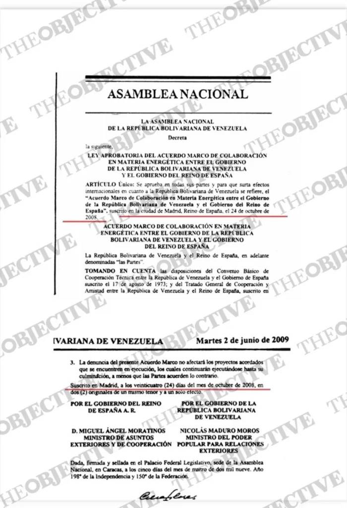 Los documentos entregados por el exviceministro Javier Alvarado a la Sección Primera de la Sala de lo Penal no dejan lugar a dudas: el contrato fue firmado por el entonces ministro venezolano Rafael Ramírez, figura clave del régimen, y negociado políticamente por Miguel Ángel Moratinos, ministro de Exteriores bajo el segundo mandato de Zapatero.