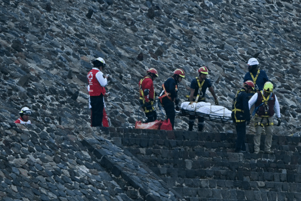 Un equipo de la AFP presenció el momento en que una de las víctimas mortales, envuelta en una bolsa blanca, era bajado cuidadosamente por las empinadas escalinatas de piedra volcánica de la pirámide hacia la Calzada de los Muertos,. Este es el principal camino del sitio arqueológico.