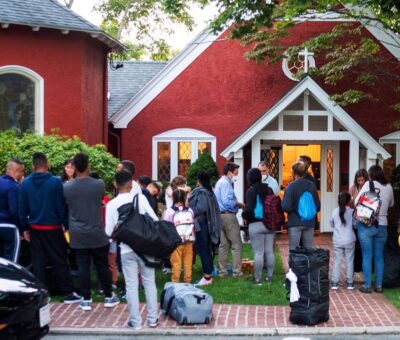 LeerFoto: Los inmigrantes se reúnen con sus pertenencias afuera de la Iglesia Episcopal de San Andrés, el miércoles 14 de septiembre de 2022, en Edgartow