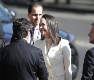 LeerMachado arribó a Santiago de Chile un día antes del acto y fue recibida por venezolanos residentes en el país. Participará en actos protocolarios vin