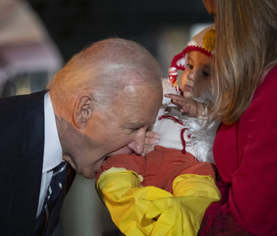 LeerEl presidente dio la bienvenida a los invitados, interactuó con los más pequeños y repartió golosinas. El presidente de EE.UU., Joe Biden, muerde