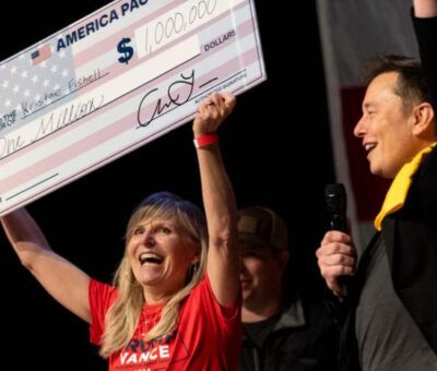 LeerEl dueño de Tesla, Elon Musk, dijo que ofrecería un millón de dólares por día a los votantes registrados que firmen su petición y entregó un cheque p