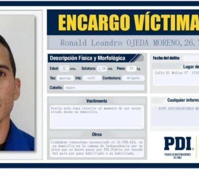 Las autoridades policiales de Chile detuvieron a un venezolano de 17 años como primer sospechoso del secuestro y asesinato de Ronald Ojeda, mientras