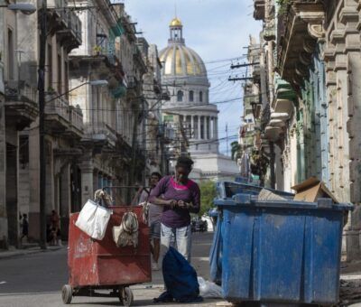 Leer(EFE).- Rafael, un ciudadano de Cuba de 56 años, saca una bolsa de plástico con cuatro panes duros de un contenedor que desborda basura y q