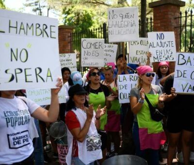Mujeres protestan contra un megadecreto del gobierno argentino, delante de la residencia presidencial de Olivos, antes de una huelga general, el 23 d