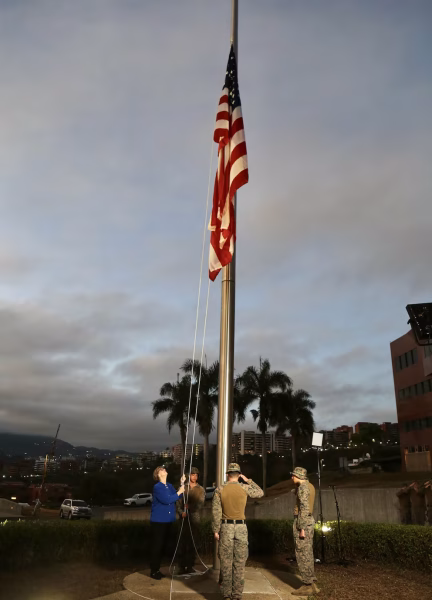 A primeras horas del 14 de marzo, el edificio de la Embajada de los Estados Unidos en Caracas fue escenario del izado oficial. El evento simbolizó el regreso estadounidense y el impulso a una agenda bilateral tras siete años de ruptura. Por otro lado, resaltó la relevancia geopolítica de Caracas para la región.