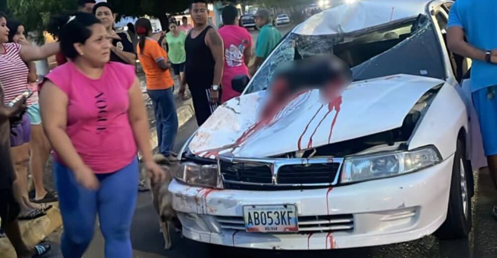 El fuerte impacto que sufrió la víctima hizo que le cercenaran los miembros inferiores y su cuerpo se estrelló contra el parabrisas, quedando gran parte de su cuerpo dentro del carro.