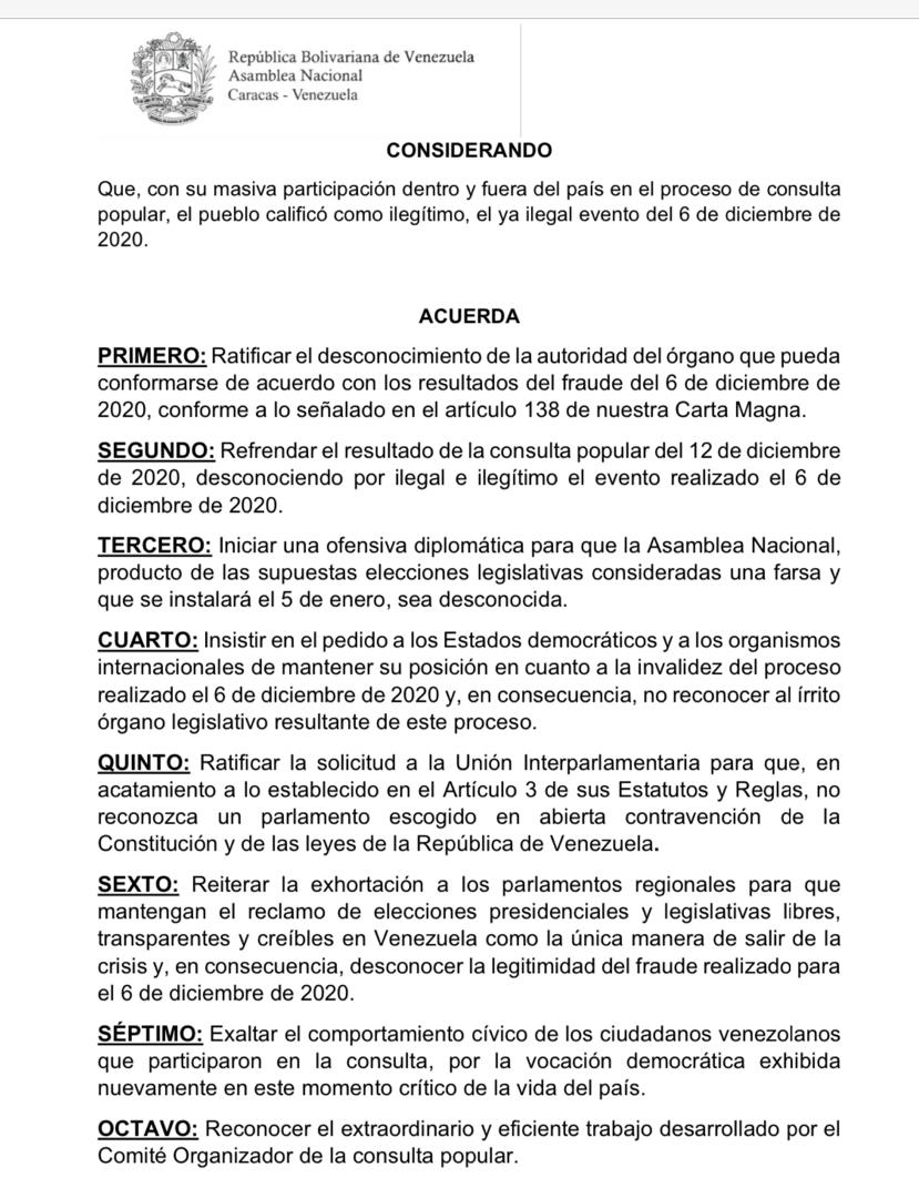 CONSIDERANDO Primero la voluntad de los ciudadanos CONSIDERANDO Primero la voluntad de Venezuela CONSIDERANDO Que los partidos respetaran el mandato de los ciudadanos Reclamado el 12 de diciembre del 2020