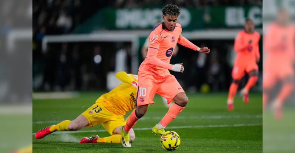 Lamine Yamal ofreció otro espectáculo al anotar el primer gol del Barcelona y atormentar a los defensores durante todo el partido para encabezar al líder de La Liga a una victoria por 3-1 en Elche el sábado.