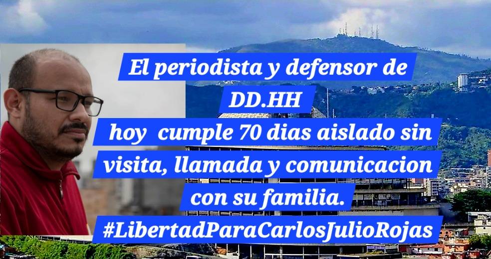 El periodista y defensor de derechos humanos Carlos Julio Rojas ha sido sometido a más de dos meses sin visita ni contacto con sus familiares, lo que viola sus derechos fundamentales, informó el defensor de derechos humanos y profesor universitario Joel García.