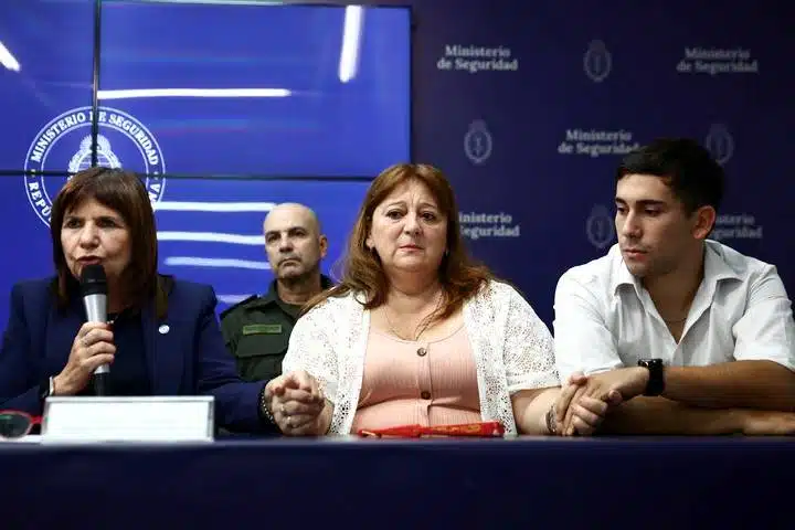 Bullrich con la mamá y con uno de los hermanos del gendarme Nahuel Gallo.