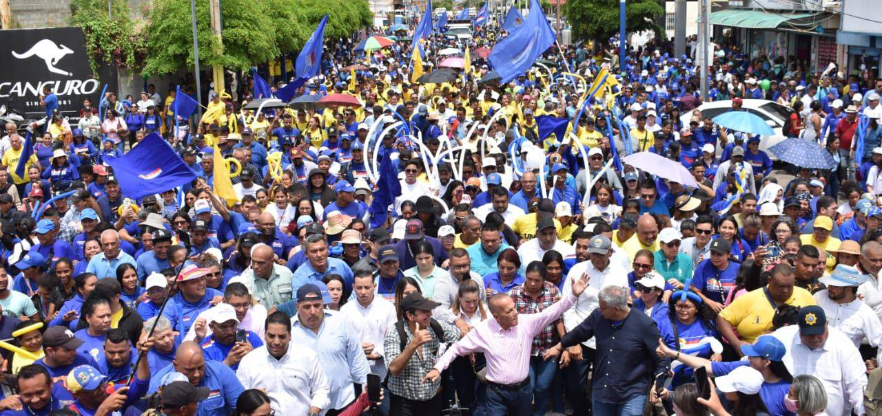 En medio del bullicio y los ritmos gaiteros, comentó que hay dos grupos desesperados. “Uno es el oficialismo y otro es el grupito que no le gusta la ruta electoral y democrática, que se convierten en radicales. Yo los respeto, pero se ve que buscan los caminos de la guerra sucia. Sin embargo, el Zulia está alegre en las calles y canta nuestro himno de victoria. ¡Miren esta multitud!
